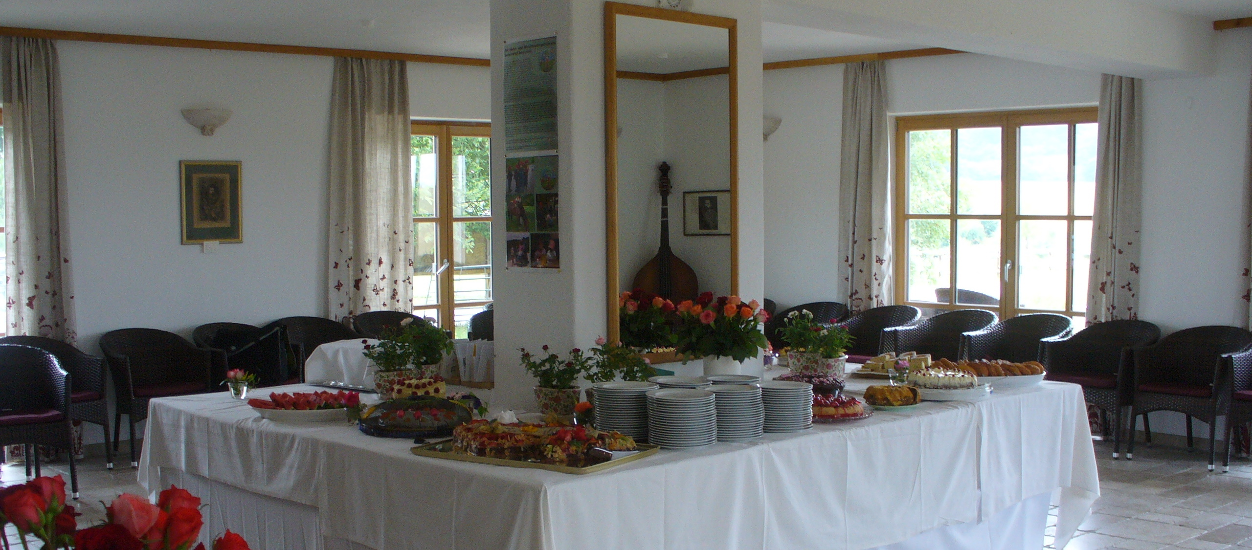 An den Wochenenden bieten wir Ihnen außerdem ein vielseitiges Frühstücksangebot mit Bio-Broten und Brötchen, selbstgemachten Aufstrichen und Marmeladen, mit Käsespezialitäten der Bio Käserei Wohlfahrt und Wurst der regionalen Metzgerei Hecht aus Lupburg an.